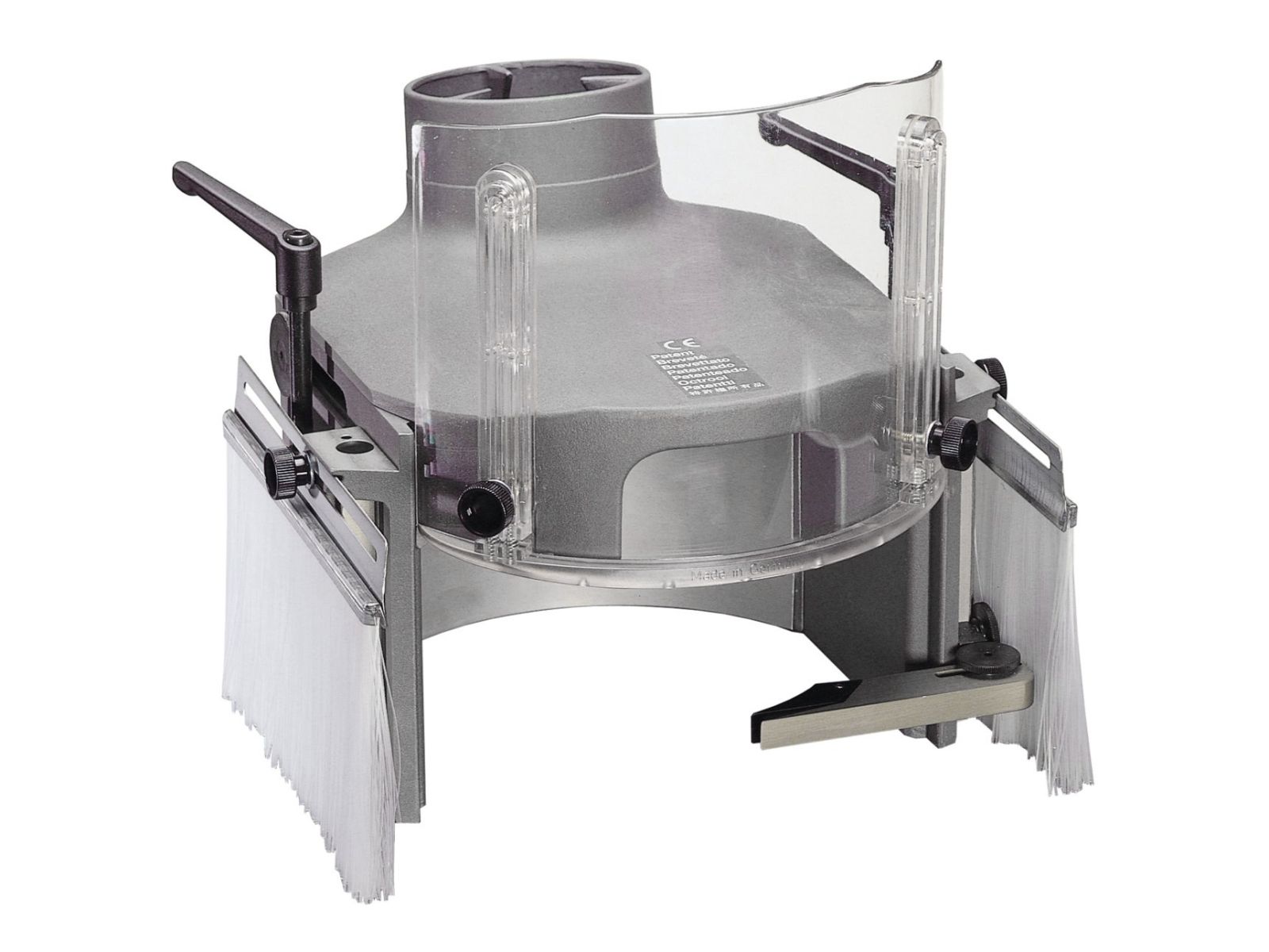 - Der transparente Sichtschutz ist in der Höhe auf die jeweilig verschiedene Werkstückhöhe einstellbar