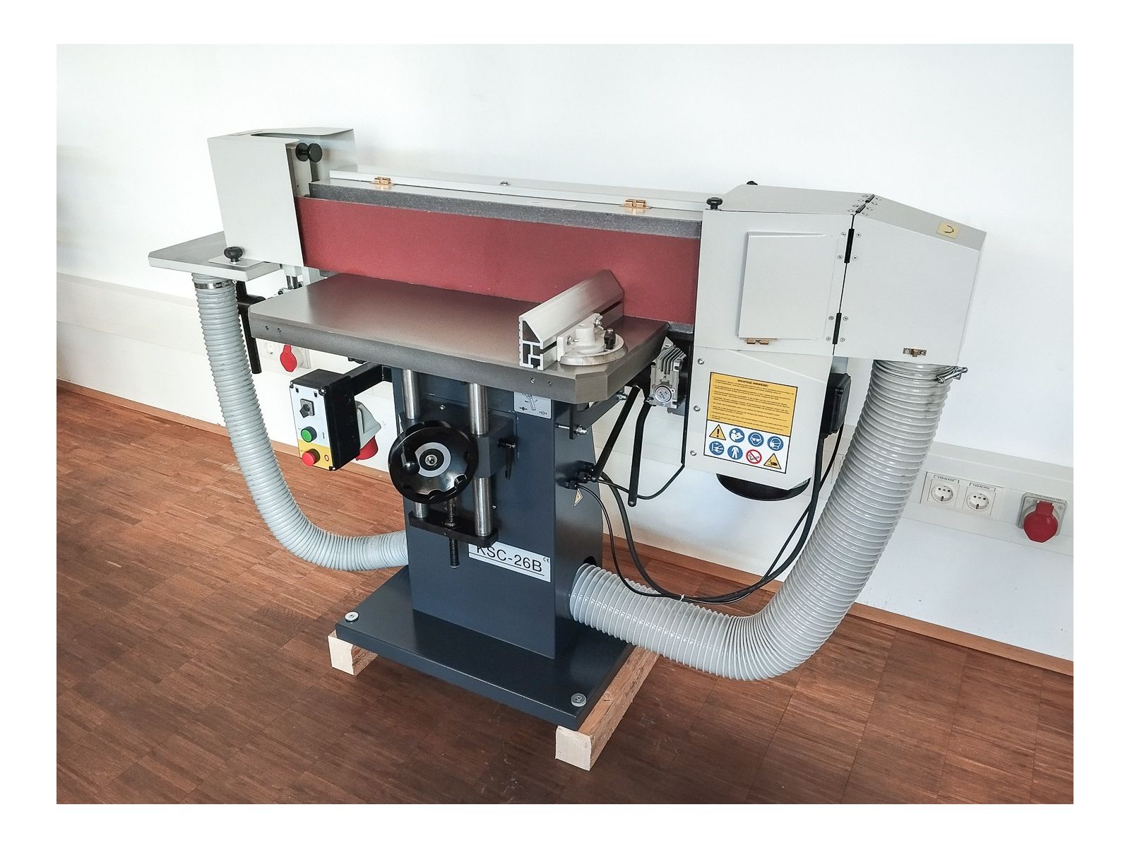 Verwandte Begriffe: ECO KSC-26B, Kantenschleifmaschine, 150 mm Band, 4 PS Motor, 400 V Antrieb, Oszillation, Werkstattgerät, Holzbearbeitung, Profiqualität, Schleiftechnik