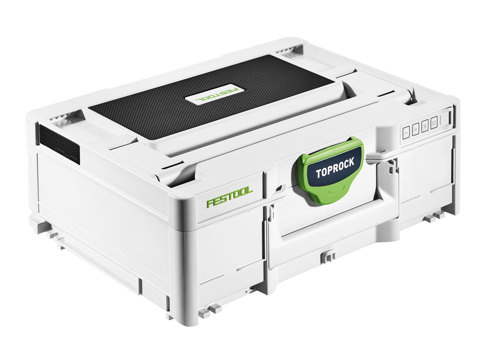 Das neue Bandmitglied in der Festool Sound-Familie heißt TOPROCK. Der Bluetooth® Lautsprecher im Systainer³-Deckel vereint alle Vorteile des Festool Systainer-Systems mit hervorragendem Klang. Vier Hochleistungslautsprecher sorgen in Kombination mit der clever designten Resonanzkammer für einen klaren und voluminösen Sound. Sie wollen noch mehr? Dann verbinden Sie doch einfach zwei TOPROCK mit Ihrem Smartphone und genießen raumfüllenden Stereo-Sound.