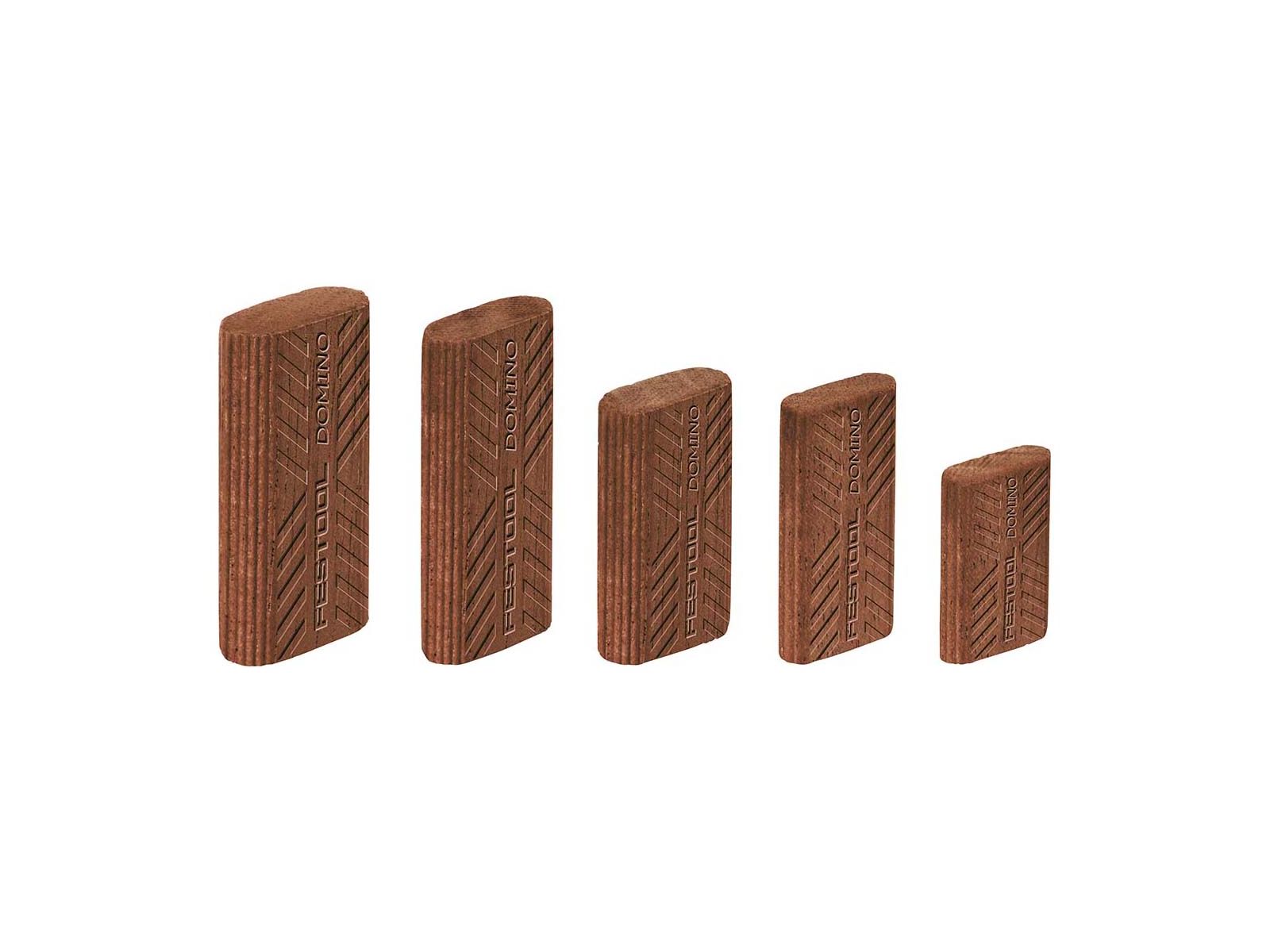 Holzdübel mit quellenden Leimtaschen und seitlichen Längsrippen für optimale Passgenauigkeit. 100 % Verdrehsicher bereits ab dem ersten DOMINO. DOMINO aus Sipo Holz, resistent gegen Insekten- und Schimmelbefall, dadurch bestens geeignet für den einsatz Außenbereich