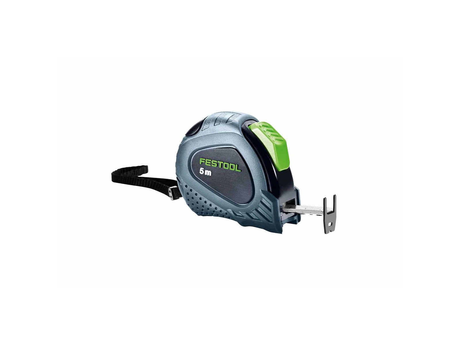 Robustes 5m Maßband mit stabilem Gürtelclip und automatischem Aufrollsystem. Flexible Bedienung durch Stopp-Taste auf der Unterseite des Maßbands. das gummierte Kunststoffgehäuse liegt perfekt in der Hand, die Schlaufe dient zum Festhalten und Aufhängen. Horizontale Stabilität. verschiebbarer Endhaken für mehr Genauigkeit. Farbgebung: Dunkelblau mit Logodruck Festool. Material: Gehäuse aus Kunststoff, Maßband aus Metall