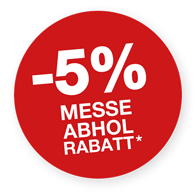 Zusätzlich 5 % Messe-Abholrabatt, auch gültig auf Aktionspreise