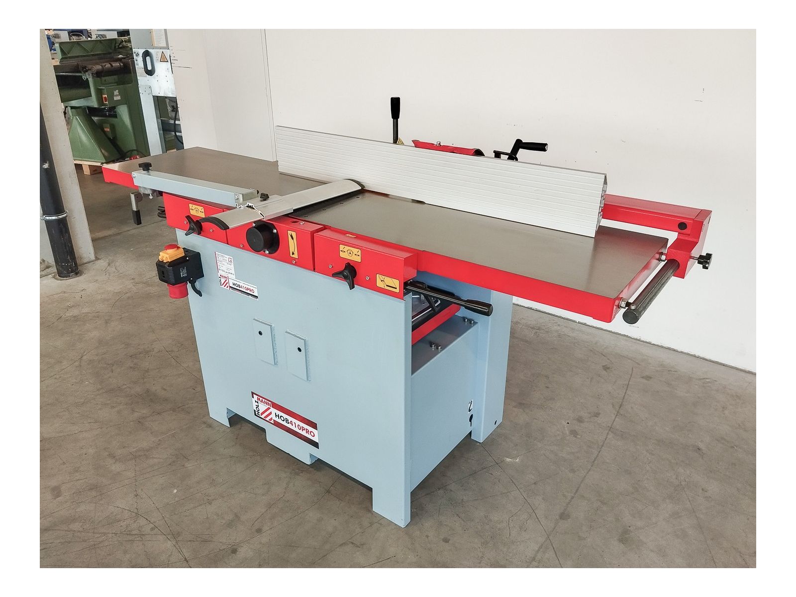 Zum Verkauf steht eine gebrauchte Holzmann Abricht-Dickenhobelmaschine HOB410PRO mit einer Dickenhöhe bis zu 225 mm.