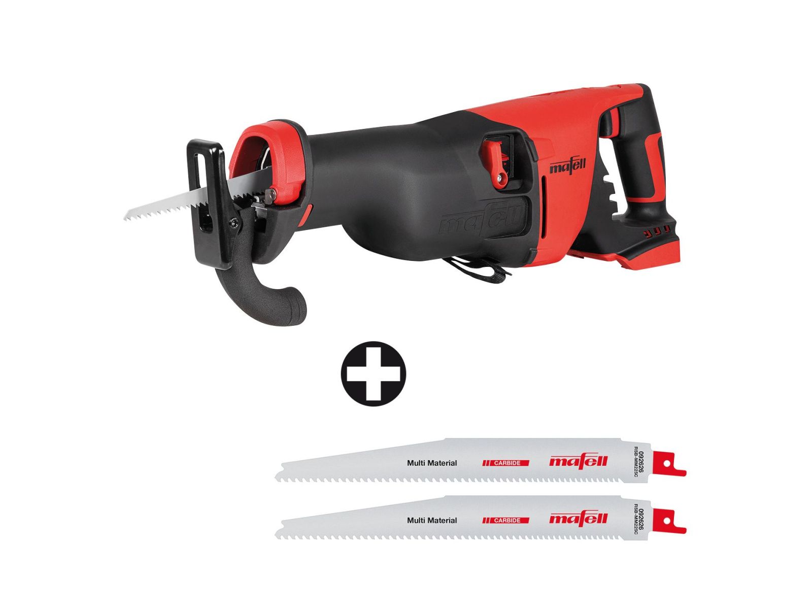 Akkubasierte Säbelsäge mit bekannter MAFEL Qualität und Leistung - jetzt im Set mit 2 Carbide Multimaterial Sägeblätter!
