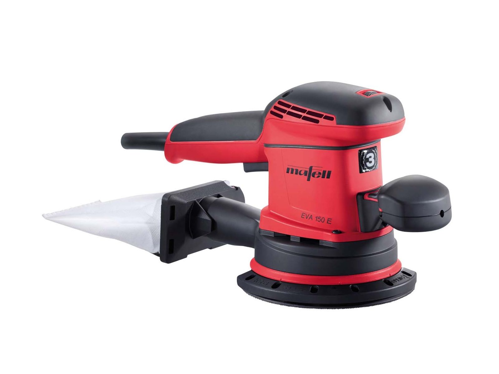 Der EVA 150 E ist der Exzenterschleifer für hohen Abtrag, ein sauberes Arbeitsumfeld und beste Ergebnisse. So erhalten alle Holzarten und Plattenwerkstoffe, aber auch Lacke, Farben und Gipsspachtel eine exzellente Oberfläche. Er bietet Ihnen eine um 20 Prozent höhere Drehzahl als herkömmliche Exzenterschleifer. Das erhöht den Abtrag spürbar. Ihr Vorteil: Bei gleicher Oberflächenqualität sind Sie bis zu 20 % schneller am Ziel und sparen letztendlich Kosten. Auch für den Dauereinsatz ist der neue Exzenterschleifer von MAFELL bestens geeignet. Der Schwingungsemissionswert des EVA 150 E liegt unter 2,5 m/s² und erlaubt deshalb einen Einsatz ohne Zeitlimit. Softgripeinlagen gewährleisten Ihnen in jeder Arbeitsposition die optimale Kontrolle über den Exzenterschleifer und sorgen für ein angenehmes, sicheres „Griffgefühl“.