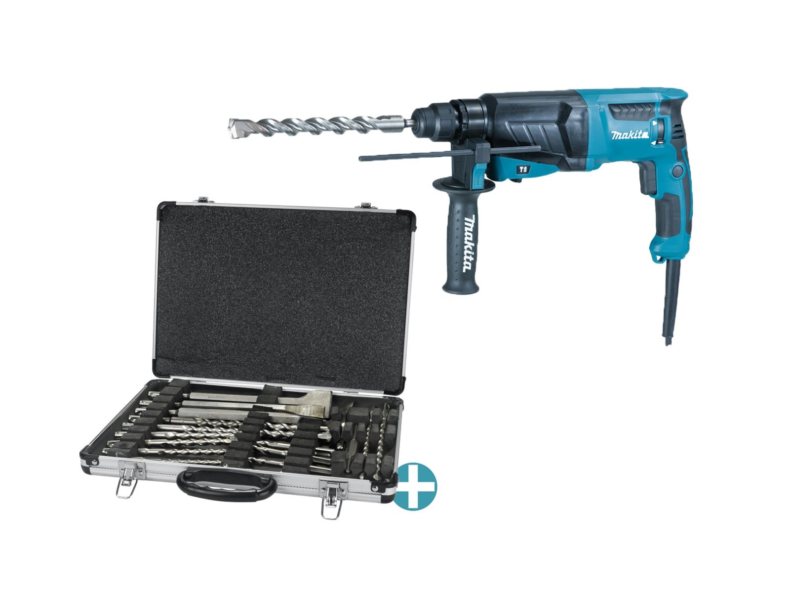 Ein handlicher Kombihammer mit 2,4 Joule Schlagenergie zum Bohren und Meißeln. Jetzt im Paket mit dem 17-teiligen Bohrer und Meißel Set!
