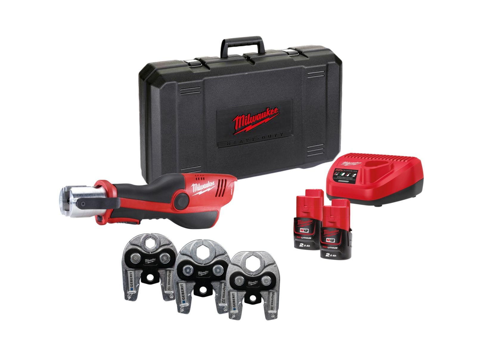 MILWAUKEE Akku-Presswerkzeug M12 ONEHPT-202C Geberit Mapress Set ONE-KEY