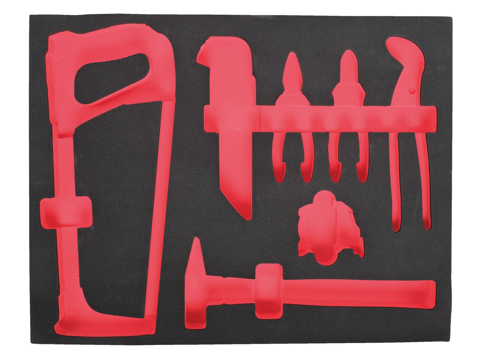 Strapazierfähige Schaumstoffeinlage für die geordnete Aufbewahrung von Handwerkzeugen.