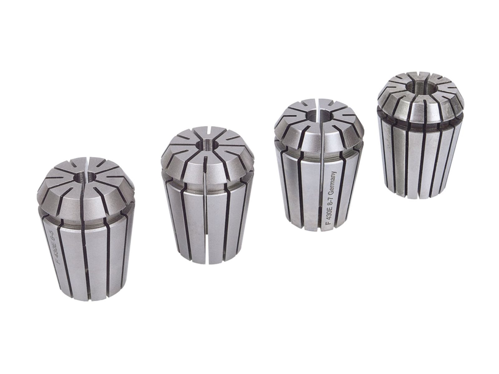 Diese Spannzangen werden mit einem Ring in der Überwurfmutter zusätzlich geführt. Diese Zusatzführung löst die Spannzange beim Öffnen mit dem Klemmschlüssel automatisch.
