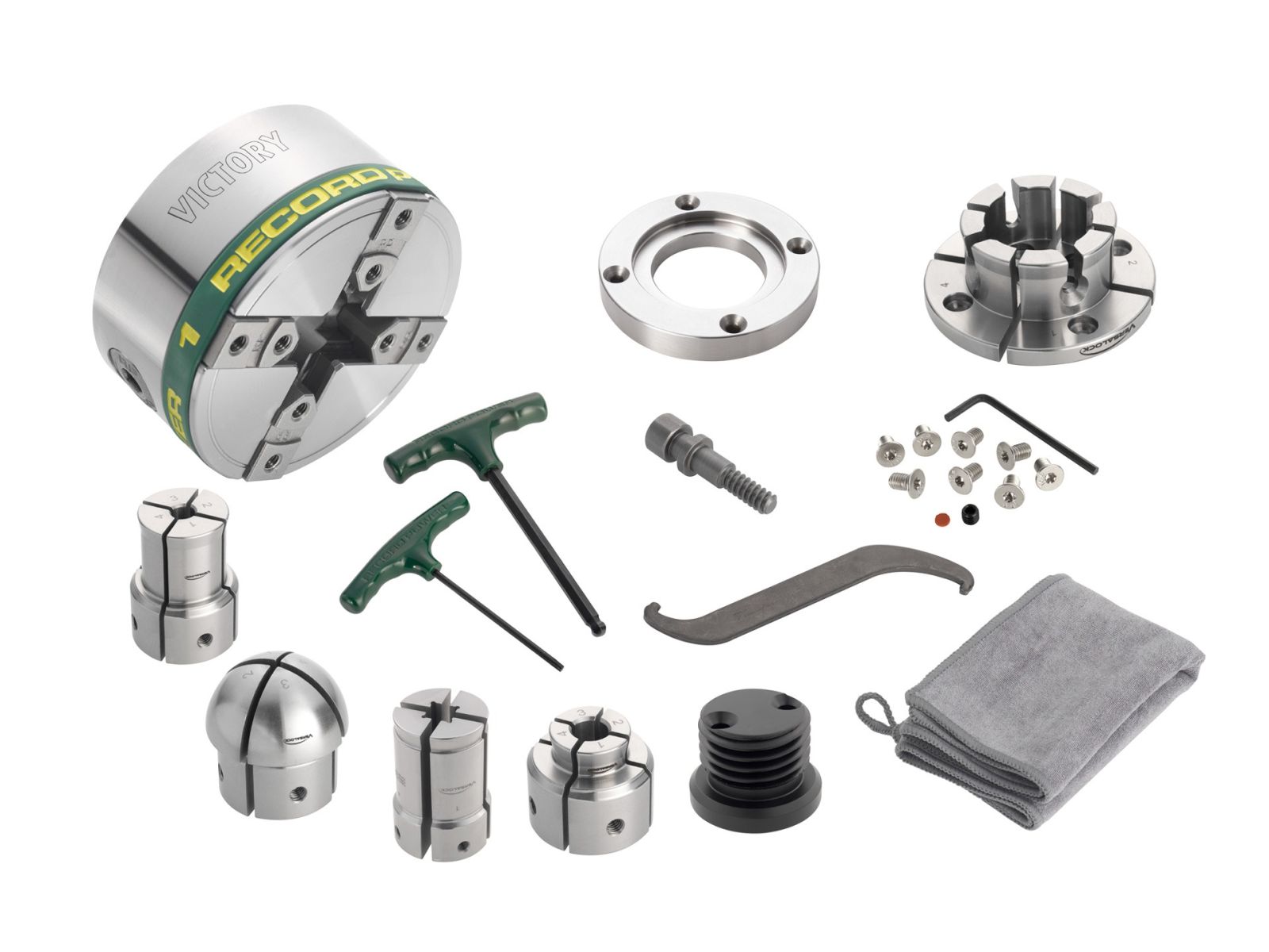 VersaLock-Spannfutter-Komplett-Set mit Gewinde M33x3,5 ASR-Euro inklusive VersaLock Basisspannzange, 4 VersaLock Spannzangeneinsätze, Planscheibenring und Wandhalterung!