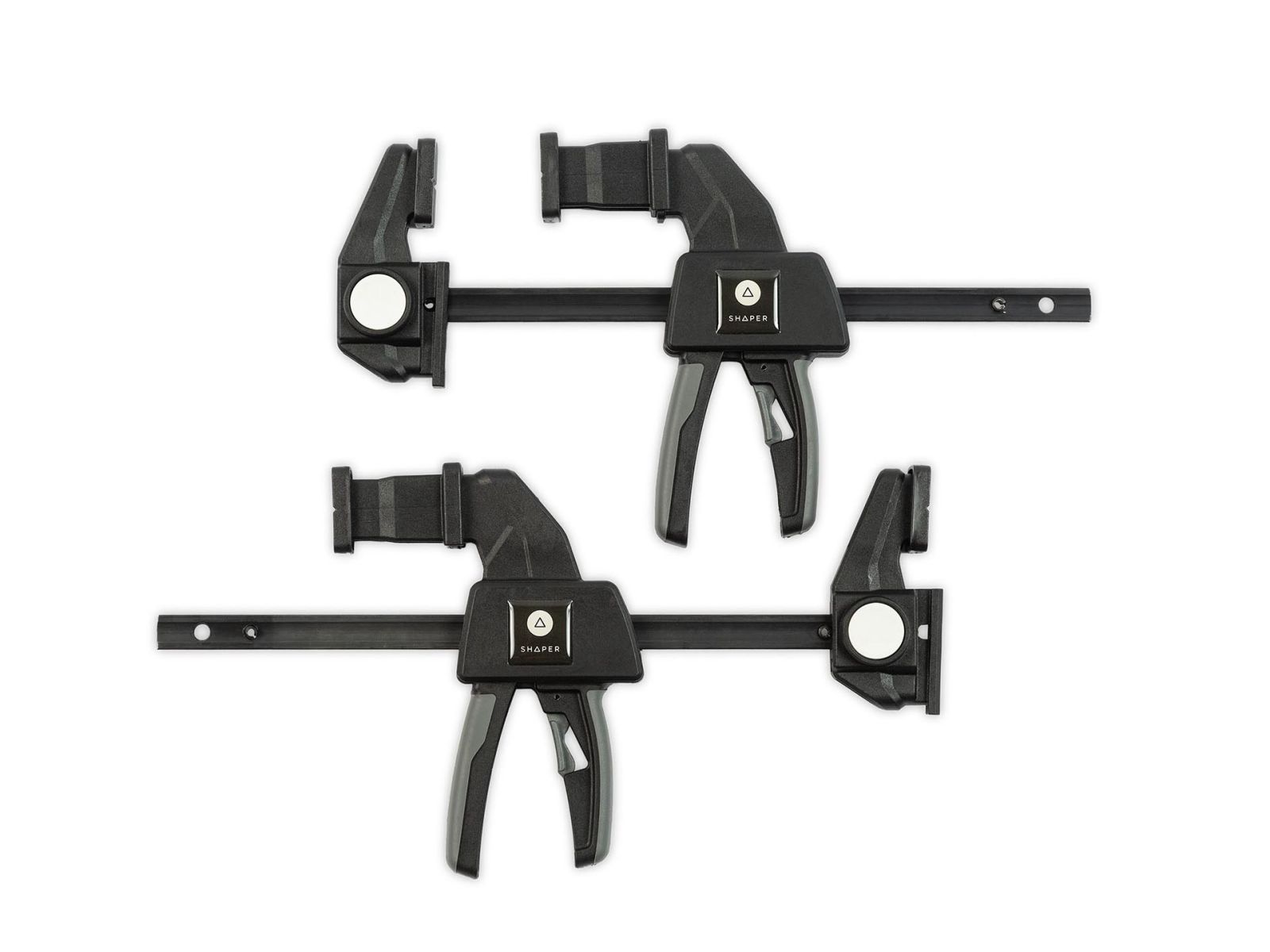 Mit den umkehrbaren Zwingen von Shaper bist du völlig flexibel. Du möchtest von Klemmen auf Spreizen wechseln? Drücke einfach den Knopf am Zwingenkopf und ändere die Spannrichtung.